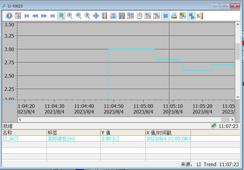 歷史趨勢(shì)。 HZT-DCS5500可調(diào)出接入系統(tǒng)的模擬量與數(shù)字量的設(shè)定值、 過(guò)程值、控制變量的歷史曲線 ,便于分析生產(chǎn)狀態(tài)。